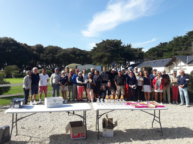 L'après-midi, c'est encore avec un 53 que la partie se gagne avec le croisicais Bruno Daniel et un très bon 57 chez les femmes de Chantal Bert. Superbe journée donc, merci aux jardiniers pour la préparation du terrain et à geoffray notre nouveau directeur qui nous a suivi et fait confiance pour cette compétition.